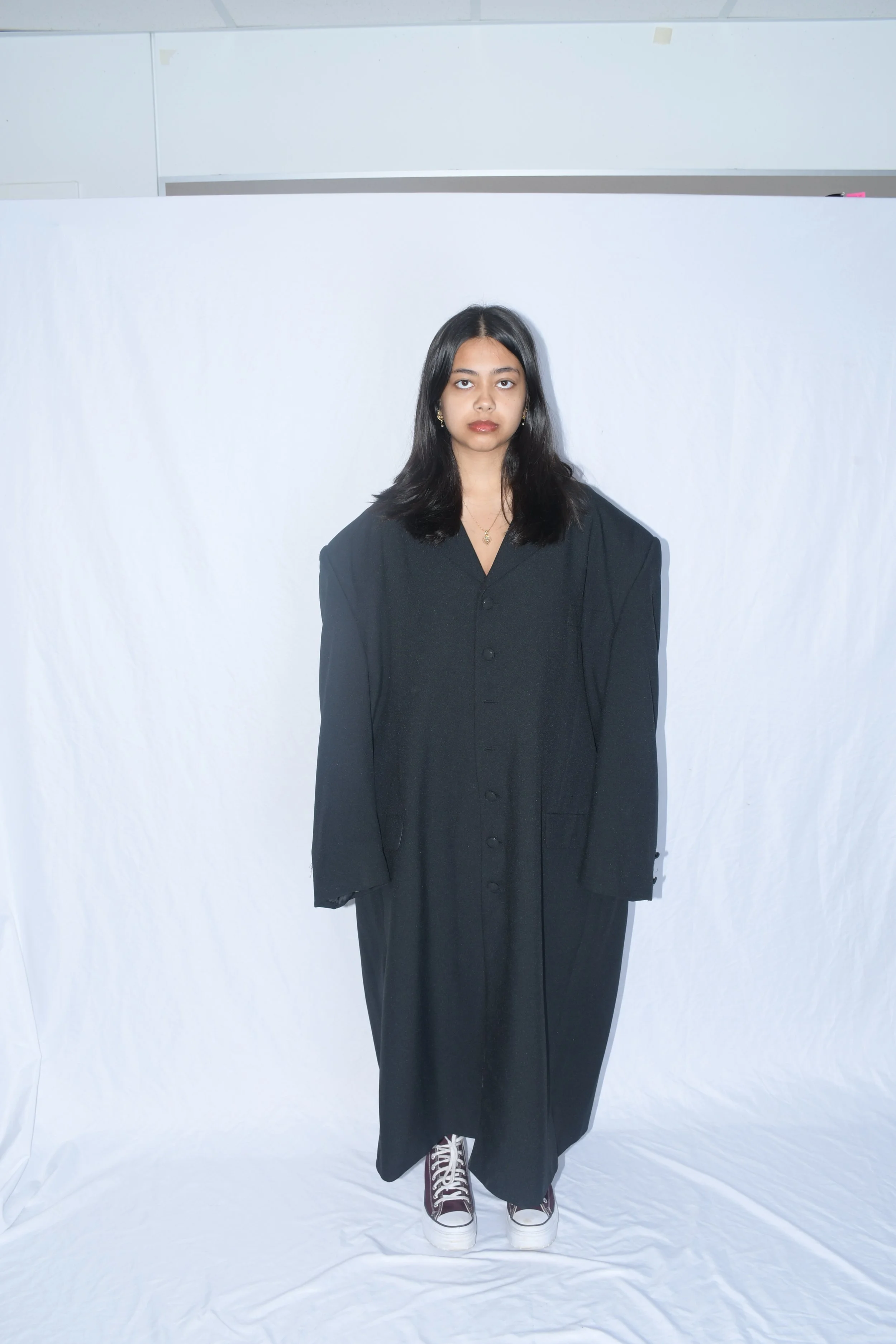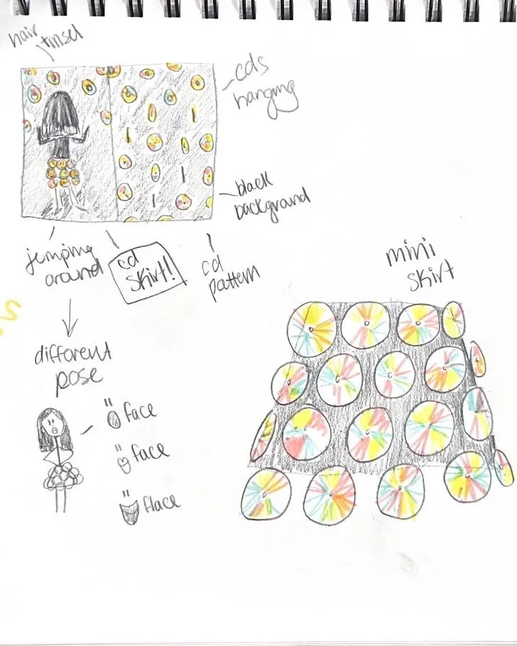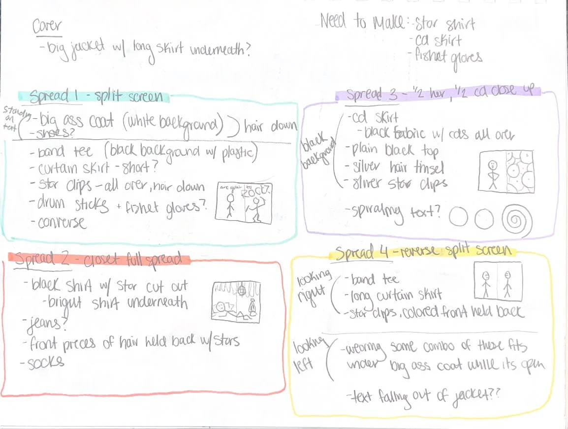 I chose to start the magazine with the character in her mother’s box, feeling very plain and sad, as if it is consuming her. Then, as you go throughout the magazine, you learn more about her character and how she navigates her daily life. All images were photographed by me, and clothing was both styled and made by me.